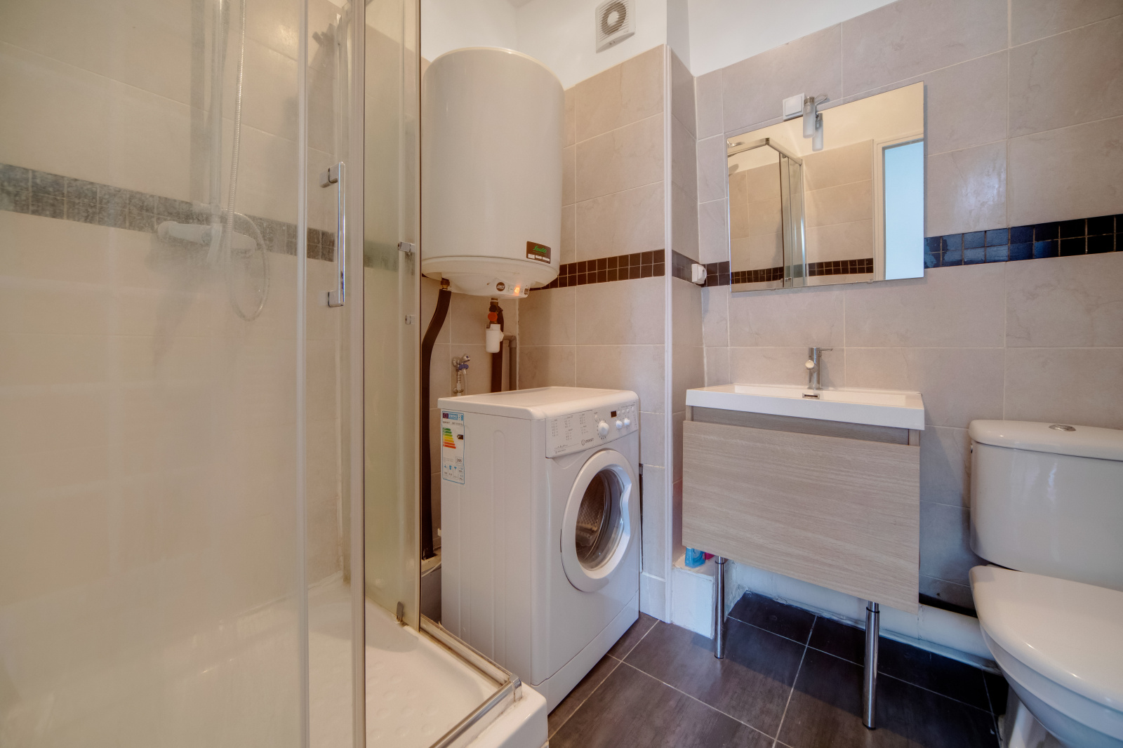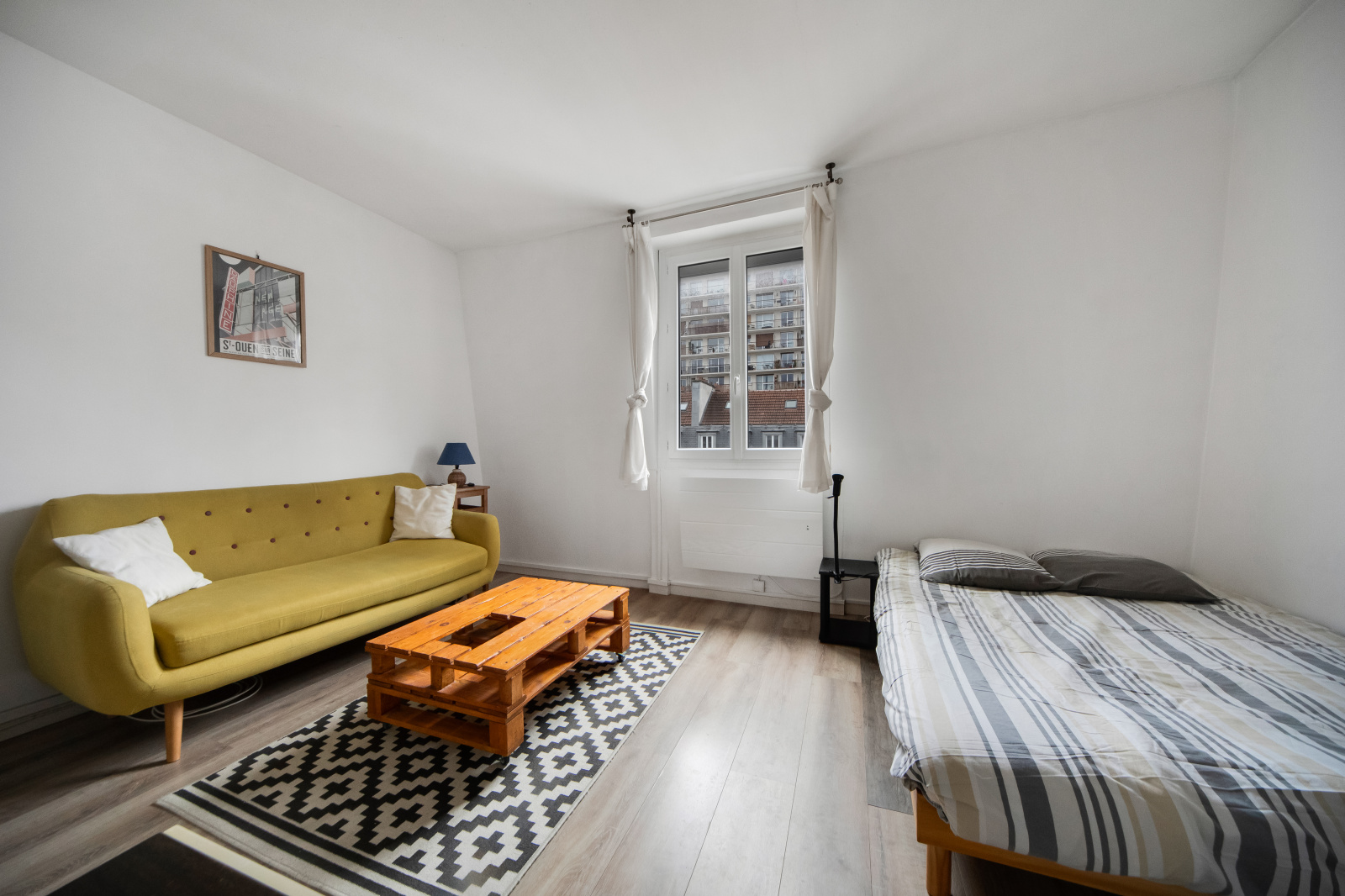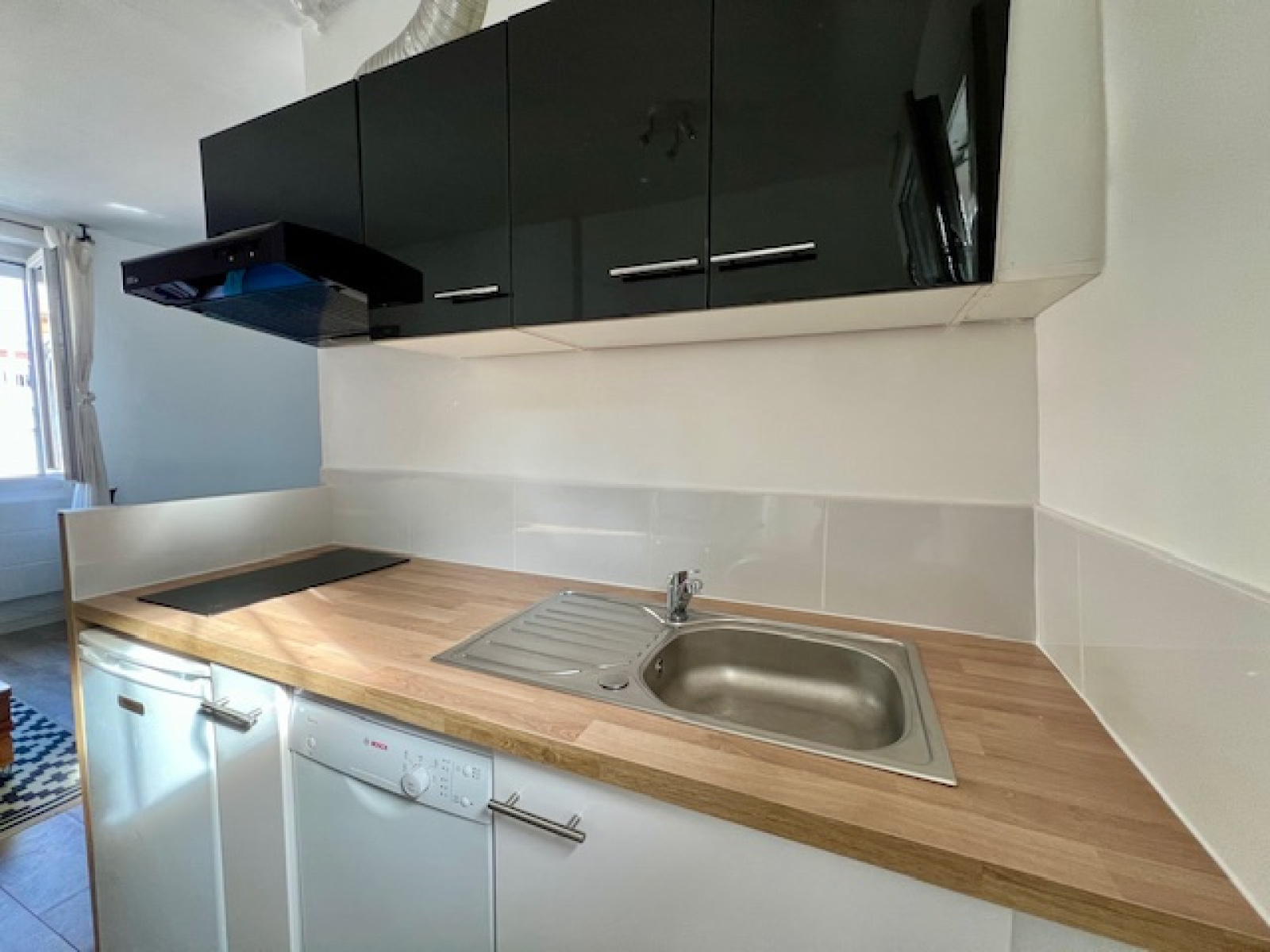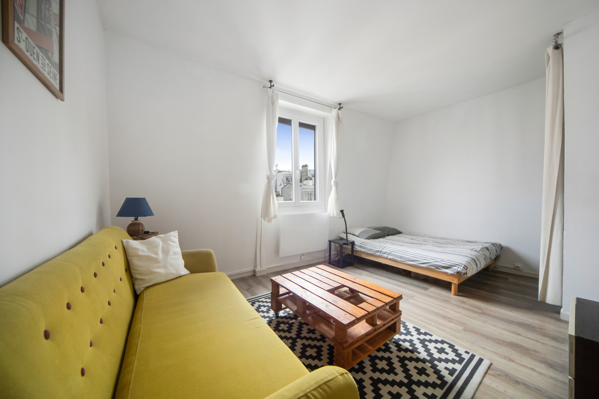 Studio, au plan idéal, aucune perte de place, dans l'ancien, situé au 4e et dernier étage, sans ascenseur, à deux minutes du métro !