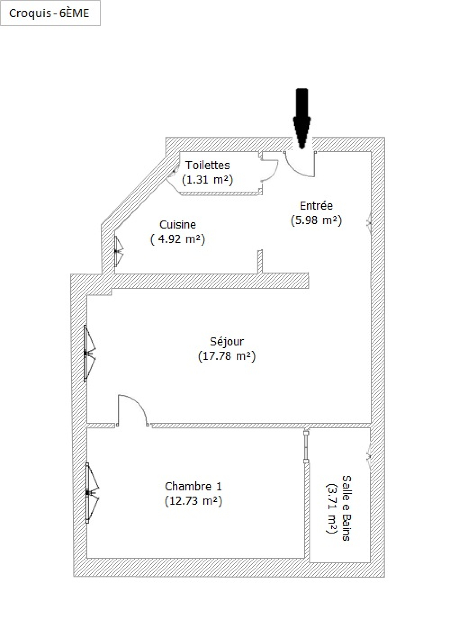 Grand deux pièces au dernier étage avec ascenseur !
