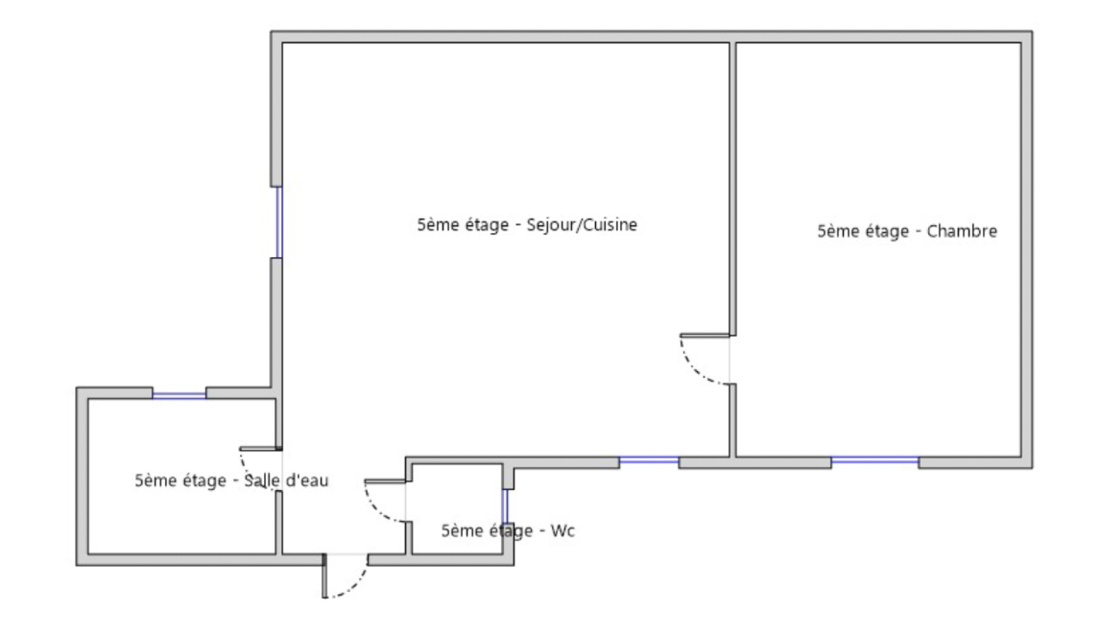 Composé d'une vaste pièce principale avec cuisine ouverte (20m2 env.) disposant de 2 grandes fenêtres, d'une chambre, d'une salle d'eau et d'un wc séparé. Le plan est optimal et très bien pensé.