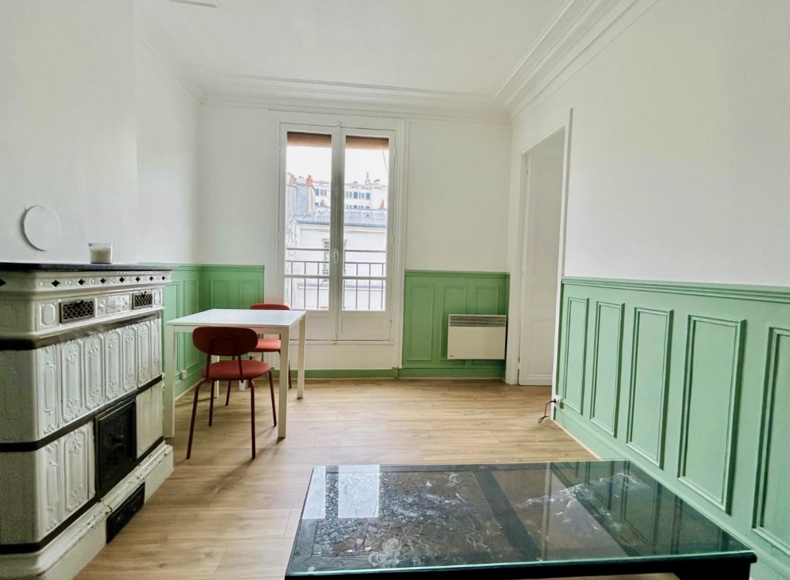 Cet appartement au charme de l'ancien (cheminée, poêle prussien et moulures), sans aucune perte de place, demandera quelques travaux pour retrouver tout son potentiel.