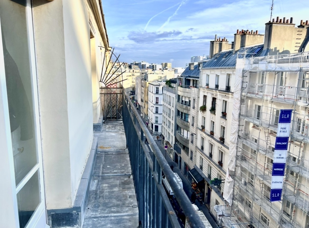 Au sein d'un immeuble pierre de taille, sécurisé, au 5éme étage sans ascenseur, deux pièces calme et lumineux, exposé (Sud/Est) sur un balcon en zinc à la vue dégagée.
