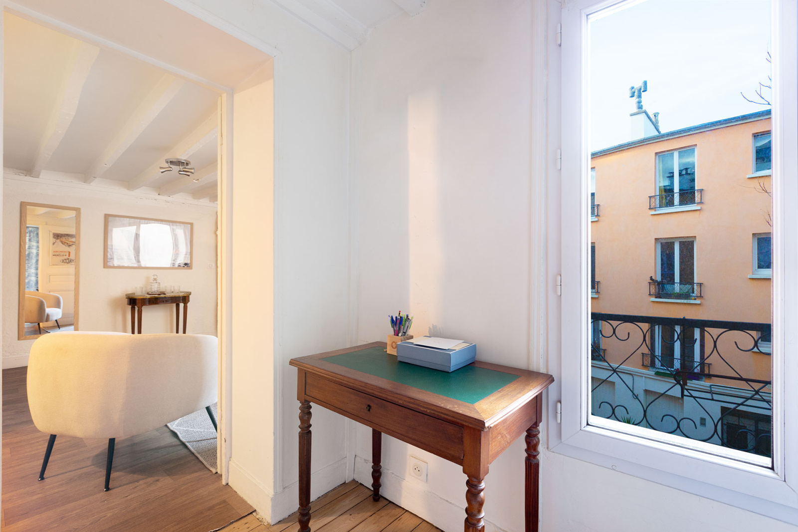 Paris (75018)L'agence, Fenêtre sur Cour, a le plaisir de vous proposer en exclusivité un bel appartement , Rue Capron, de 2 pièces avec poutres apparentes ! Situé dans une petite copropriété au calme et bien entretenue avec gardien. Le bien se situe au deuxiéme étage sans ascenseur et se compose ainsi : un séjour avec cuisine ouverte, une chambre avec rangement, une salle d'eau avec toilette. L'appartement est en parfait état. Une cave complète ce bien.