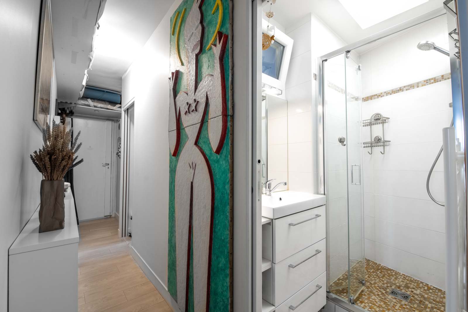 En très bon état général, ce joli cocon se trouve au sein d'une copropriété très bien entretenue, à deux pas du métro Jules Joffrin, de la fameuse rue du Poteau et ses nombreux commerces.