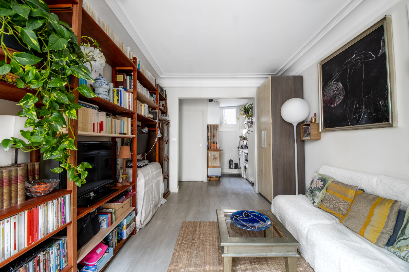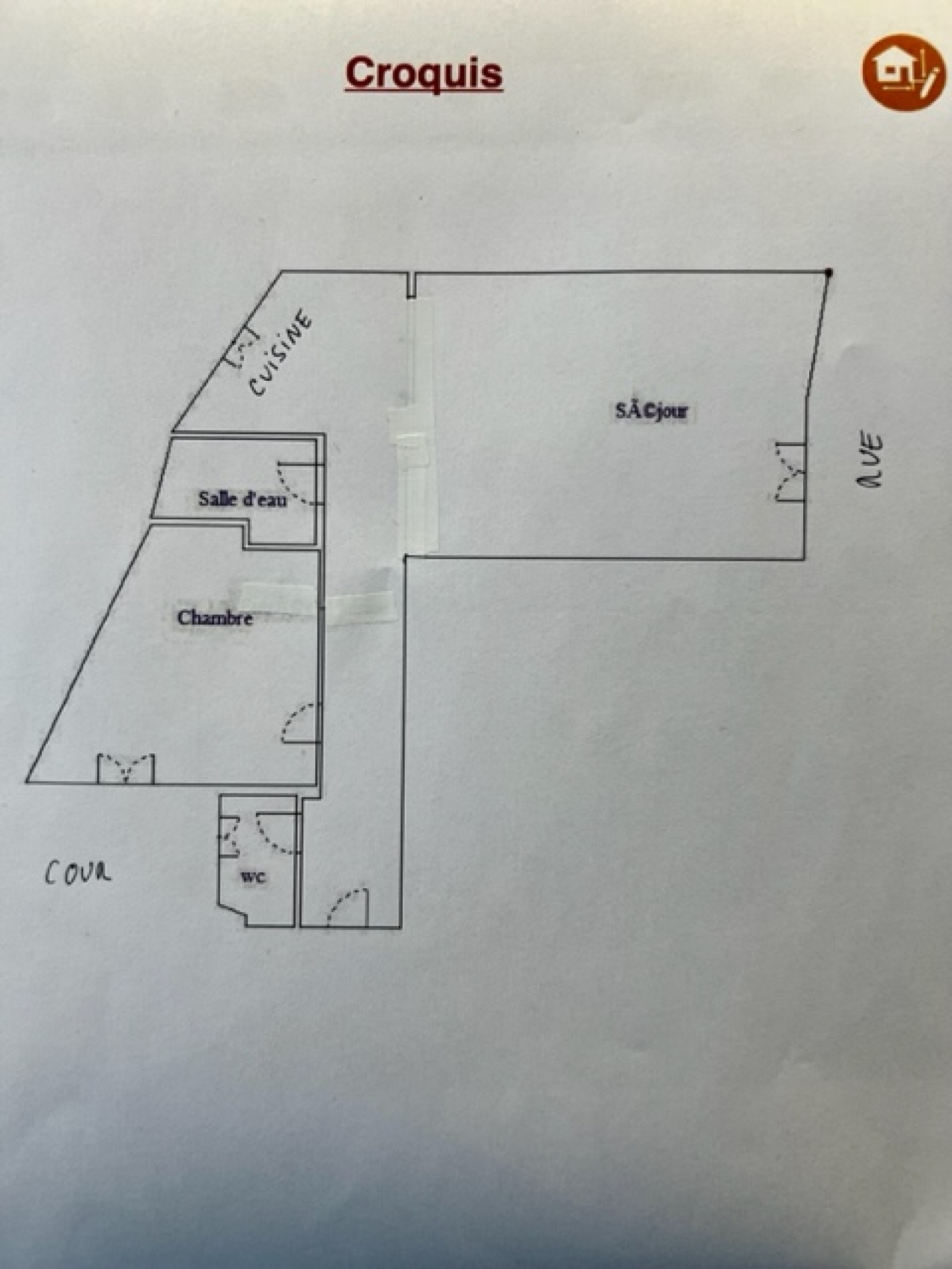 Composé d'une entrée, d'un salon exposé sur rue, d'une cuisine ouverte aménagée, d'une chambre sur cour, d'une jolie salle d'eau et d'un wc séparé.