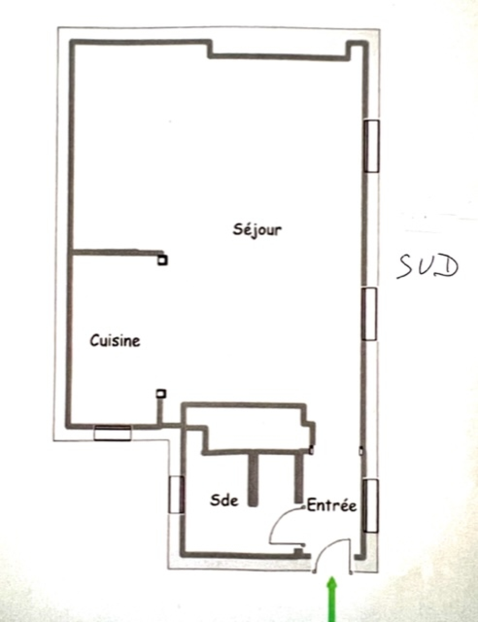 Vous profiterez d'une entrée desservant une cuisine ouverte sur une salle à manger, d'un séjour avec un vrai coin chambre exposé sud et d'une salle d'eau avec wc.