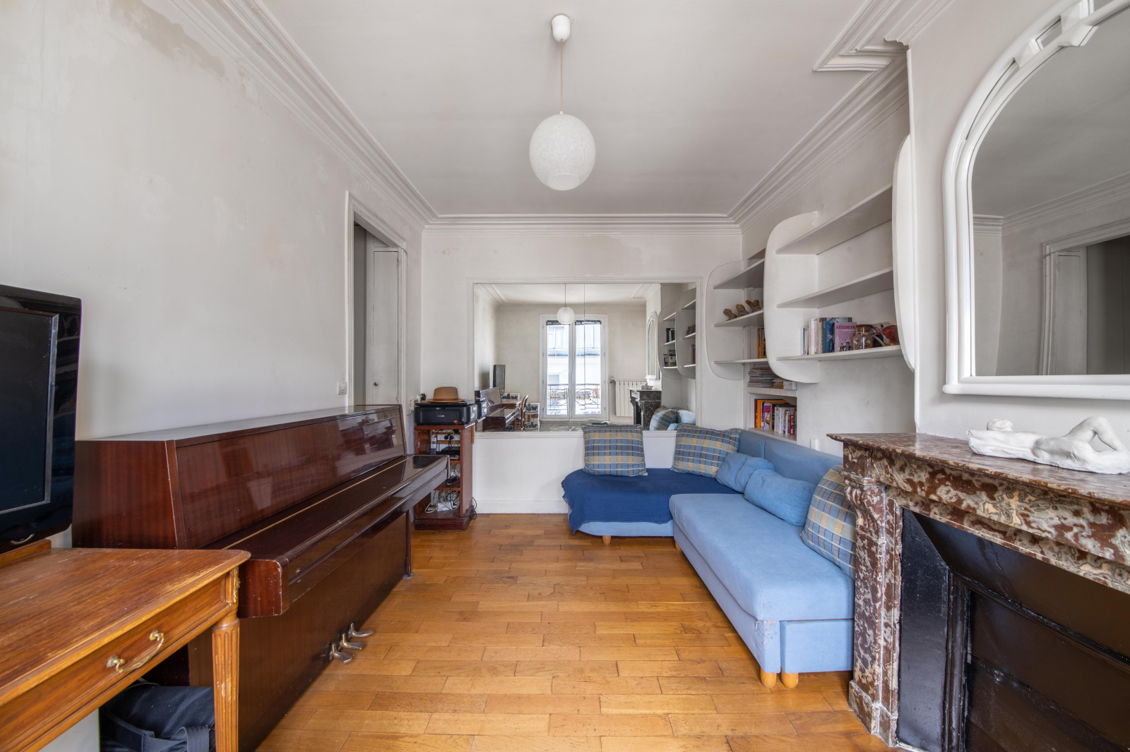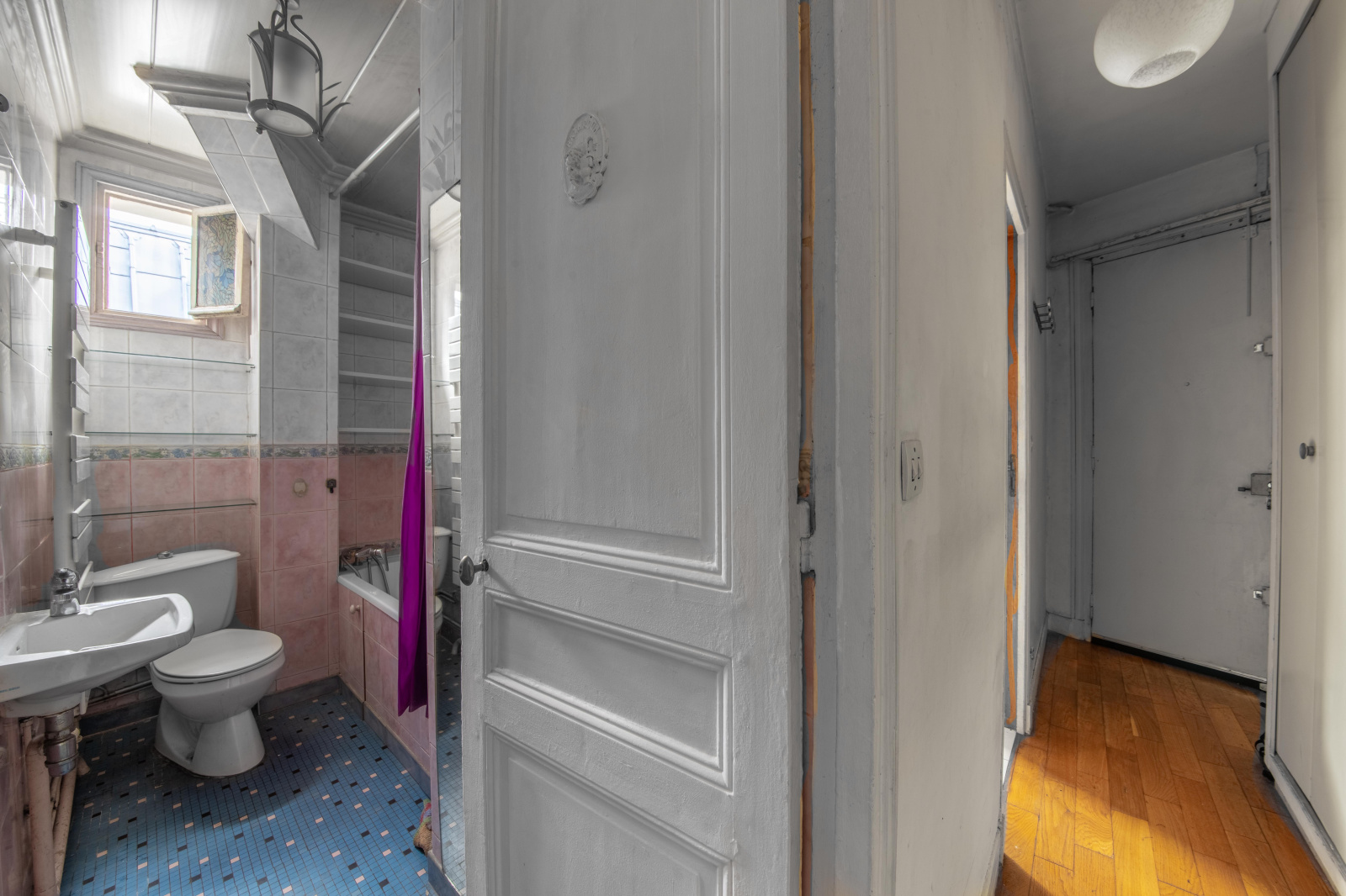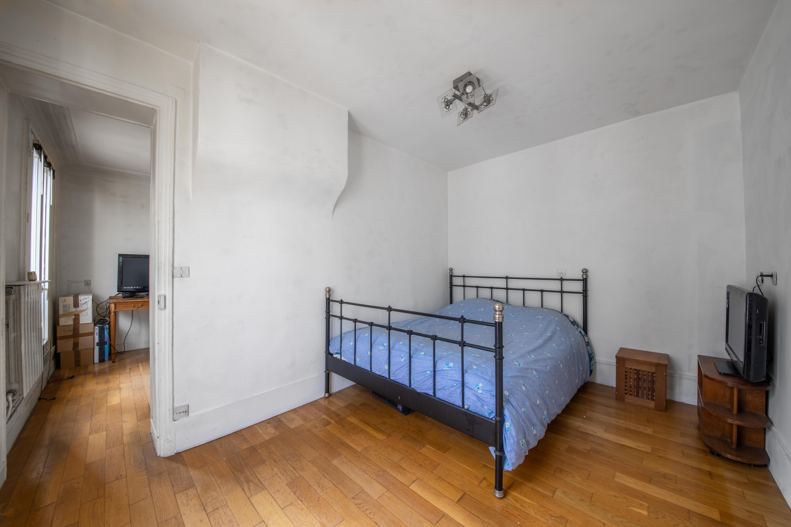 Cet appartement possède un excellent plan, modifiable, la possibilité de ne plus avoir les 2 chambres en enfilade, d'inverser la salle de bains et la cuisine afin d'ouvrir cette dernière sur le salon.