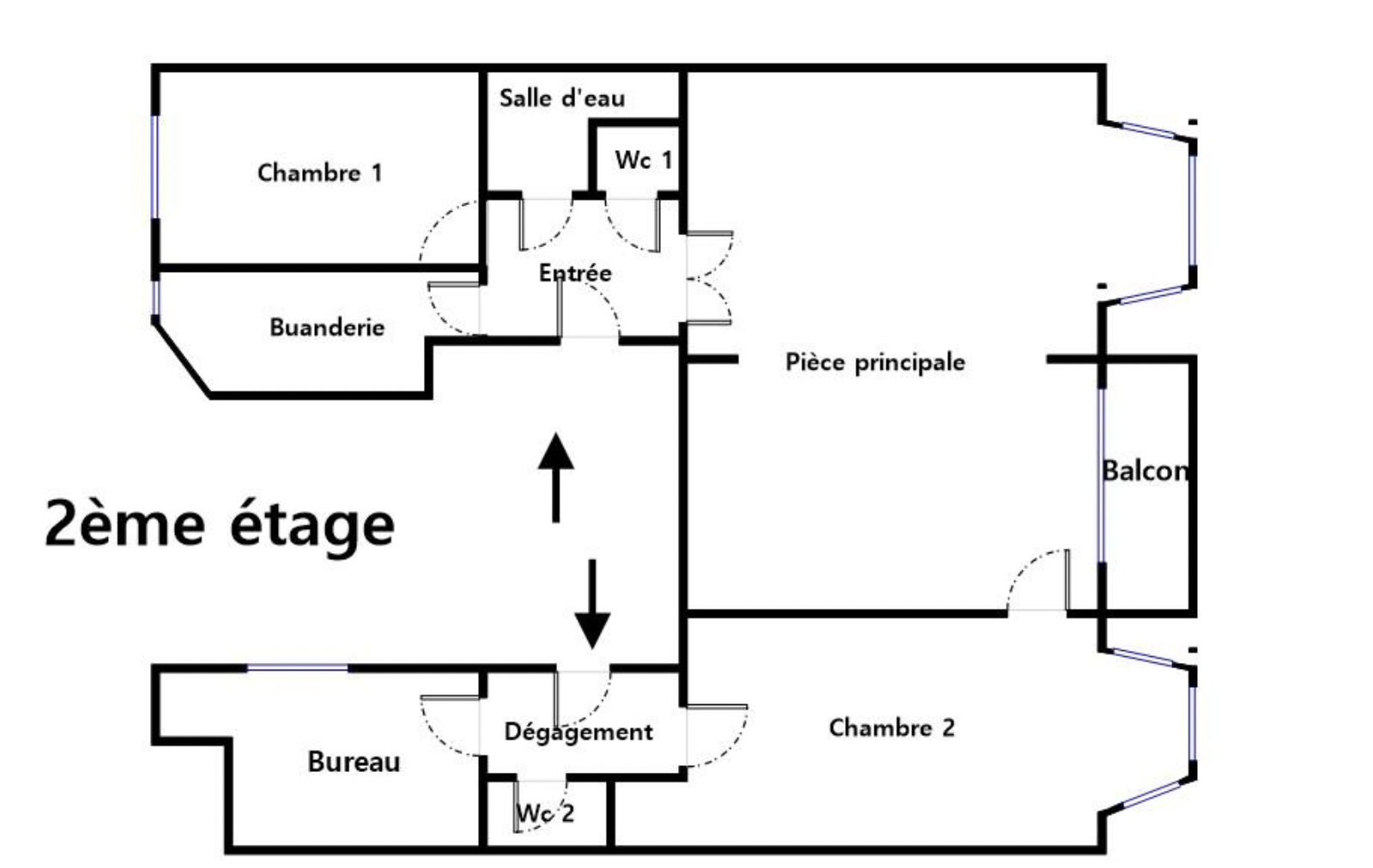 Réunion de 2 appartements (re-séparables) aujourd'hui composé d'une entrée, 2 chambres, un bureau, un séjour/salle à manger/cuisine ouverte de 26m2 avec balcon, une salle d'eau, 2 wc séparés. Le plan est totalement modulable. Possibilité d'exercer une profession libérale.